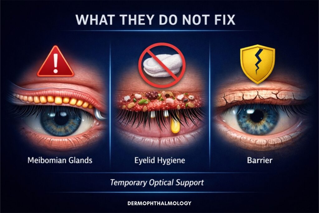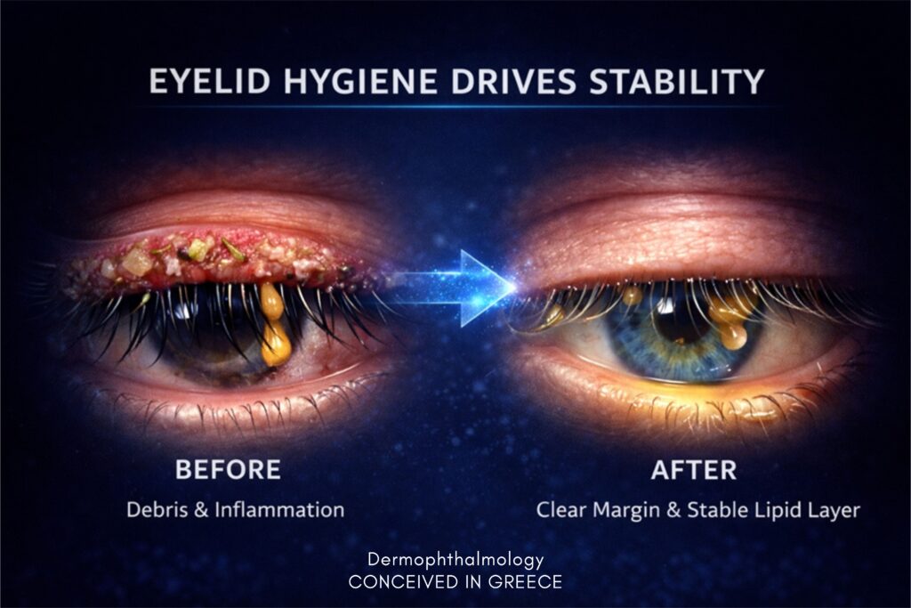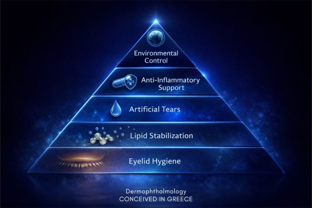 Η Δερμοφθαλμολογία απαντά ξεκάθαρα:Δεν είναι λύση του συστήματος.Είναι εργαλείο υποστήριξης της επιφάνειας.Αυτό δεν είναι «λεπτομέρεια». Είναι αλλαγή νοοτροπίας.