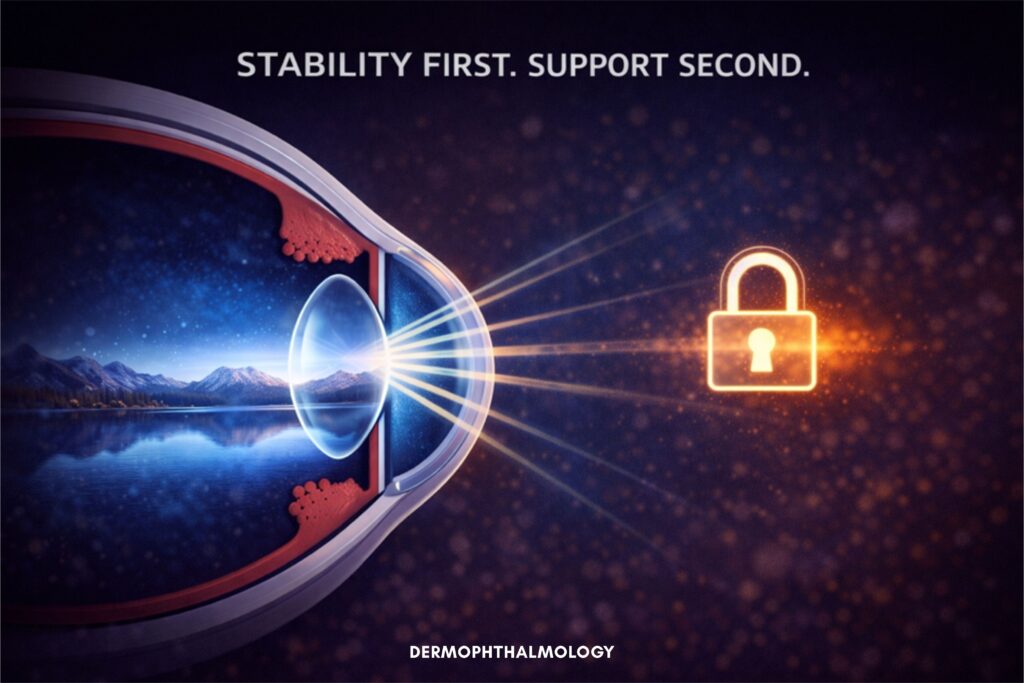 Η Δερμοφθαλμολογία τα επανατοποθετεί: Όχι ως λύση.Αλλά ως μέρος ιεραρχημένης σταθεροποίησης.