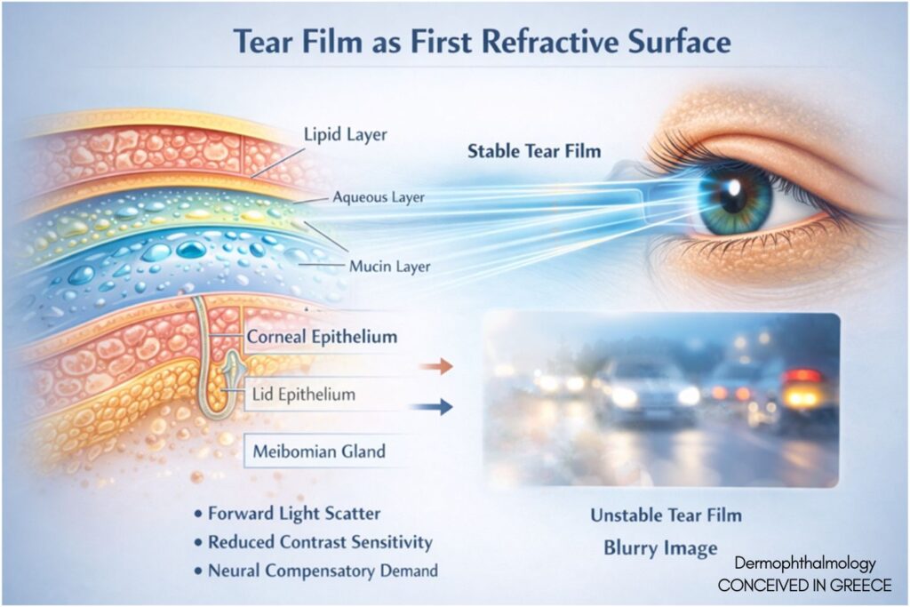 This reframes tear film dynamics from lubrication mechanics to optical interface biology.