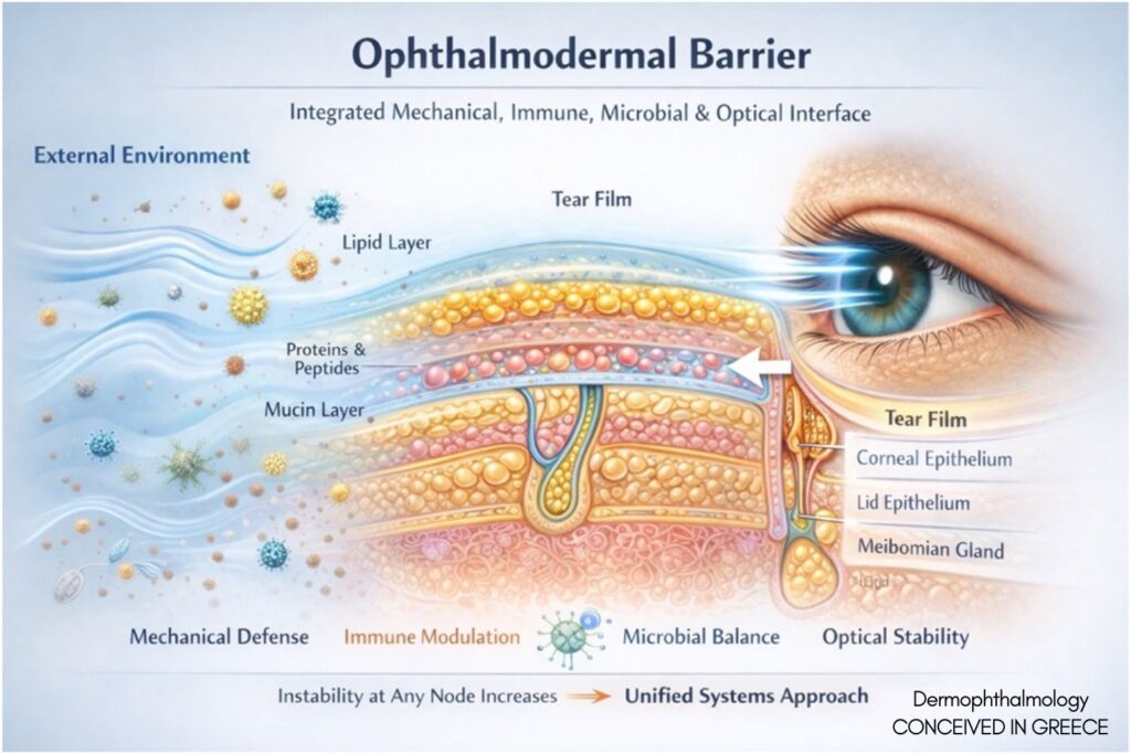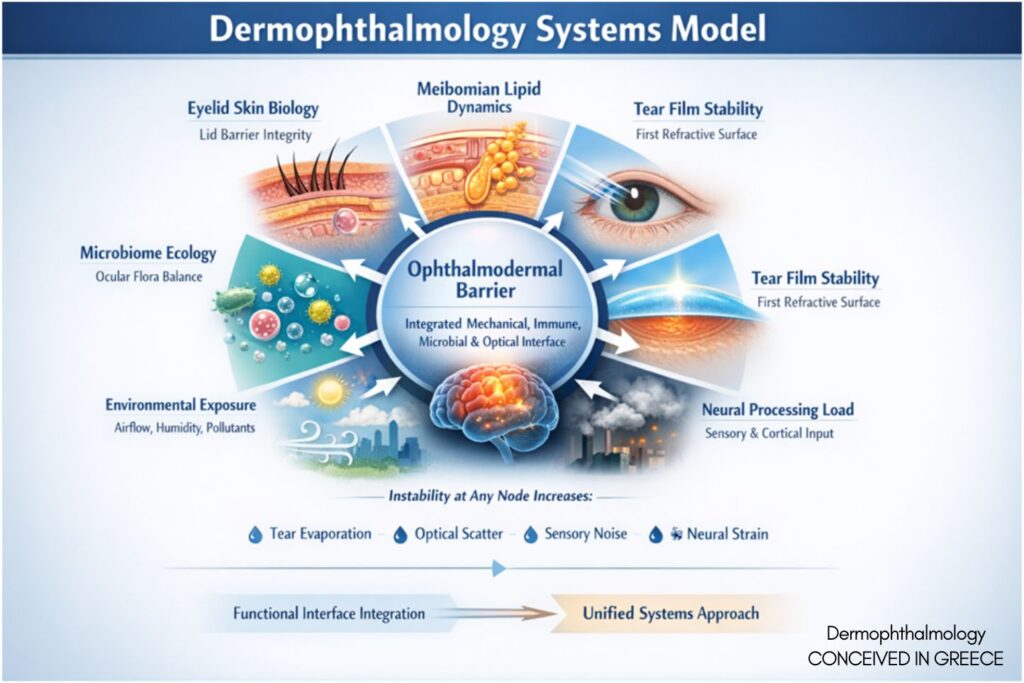 The Dermophthalmology framework was developed by the scientific team of the World Organization of Dermophthalmology (WOD) under the conceptual initiation of John Tsakalos. It does not constitute a new medical specialty. It proposes an integrative systems framework for understanding ocular surface stability as a functional bio-interface.