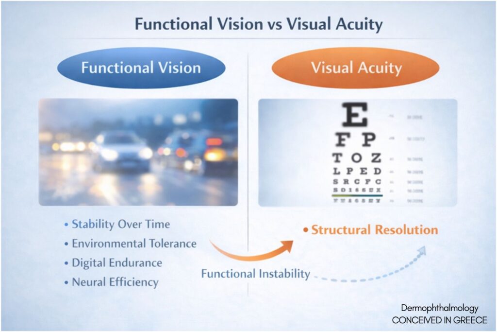 Current ocular surface disease models effectively describe structural pathology and inflammatory markers. However, a substantial population experiences functional visual instability—fluctuating clarity, fatigue, environmental intolerance—without overt clinical findings.