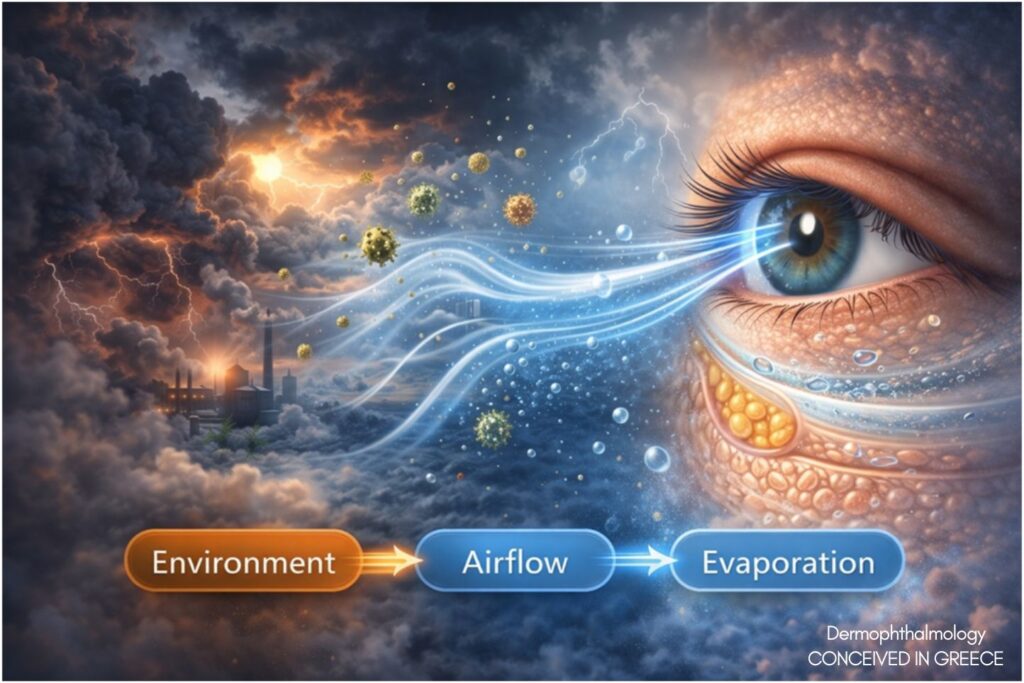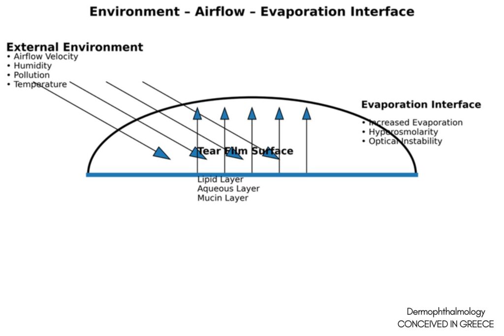 The Nose–Airflow–Eye interface suggests otolaryngologic contributions to tear film stability. Chronic nasal inflammation and altered airflow patterns may increase evaporation and surface stress.